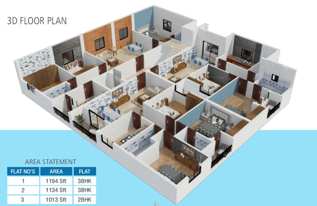 FLAT SIZE - 1194 Sq.ft. - 1134 Sq.ft. - 1013 Sq.ft.