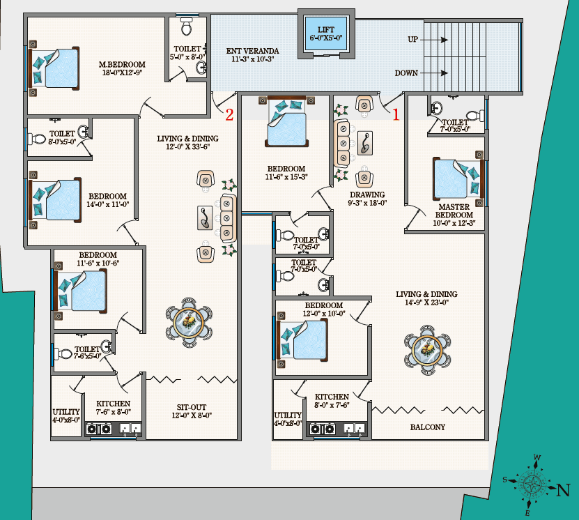 These 10 flats spread over 5 floors are made with finest construction material under the guidance of experienced architects, engineers and interior decorators.