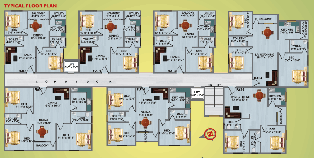 FLAT SIZE - 1447 Sq.ft. - 1406 Sq.ft. - 1401 Sq.ft. - 1218 Sq.ft. - 990 Sq.ft.